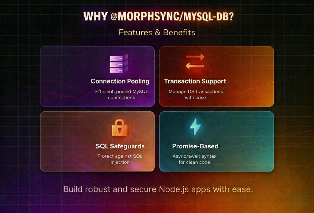 That’s how @morphsync/mysql-db was created—a lightweight, developer-friendly package designed to simplify MySQL interactions while keeping performance and flexibility intact.